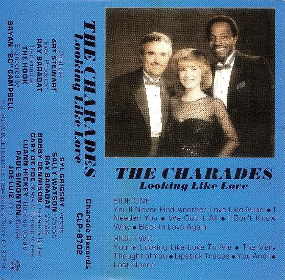 | By 1976 The Charades decided to stop playing clubs and returned to the casual jobs, weddings, reunions, private parties. By this time Mike Pruitt replaced long time member Johnny Johnson. Johnny was having medical problems and it became difficult to continue. Mike proved to be a versatile performer who sang great but also wrote songs. After a couple of years Mike moved on to become a solo performer he was replaced by Joe Grigsby who also left after about a year. Ray and Syl continued to sing with the band through 1983 when they added Sally Watson to the group. Sally was the first female to join on a regular basis. In 1987 Ray decided to record an album of cover material the group had been performing on stage for a few years. The album “Looking Like Love” contained ten songs featuring different lead singers. Art Stewart again produced the project, which started with basic tracks cut in Fresno and all vocals, horns and overdubs finished in Los Angeles. |