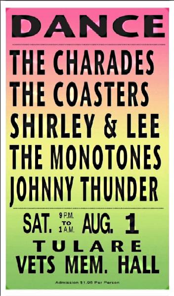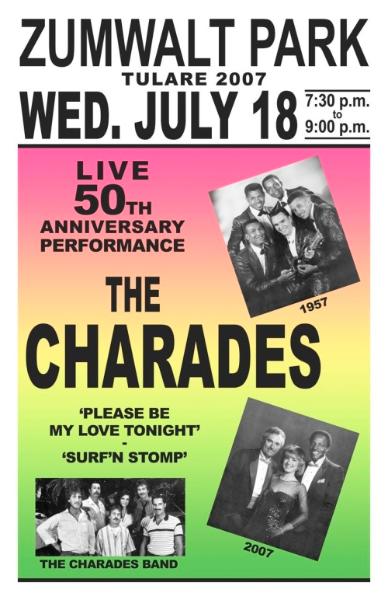 | In 1956 five young men from Tulare, California decided to form a singing group dedicated to the music of the day, Rhythm & Blues. Manuel Cisneros, Alfi Quintero, Joe Moreno and brothers Leon and Raymond Baradat named there group The Latin Knights. This name was changed to The Charades a few years later. The original group sang first at school assembly’s and school dances. Soon they were singing at dances with The Rhythm Aces, a local band playing both Mexican dance music and Rhythm & Blues. By the summer of 1957 three original members left the group and Leon and Raymond began looking for replacements. |